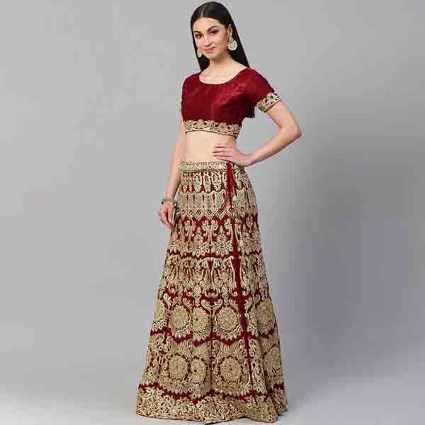 Are you ready to adorn some alluring lehengas this season? well, gear up to look gracious as brings to you the most magnificent collection of lehengas from readiprint fashions and in maroon colours.