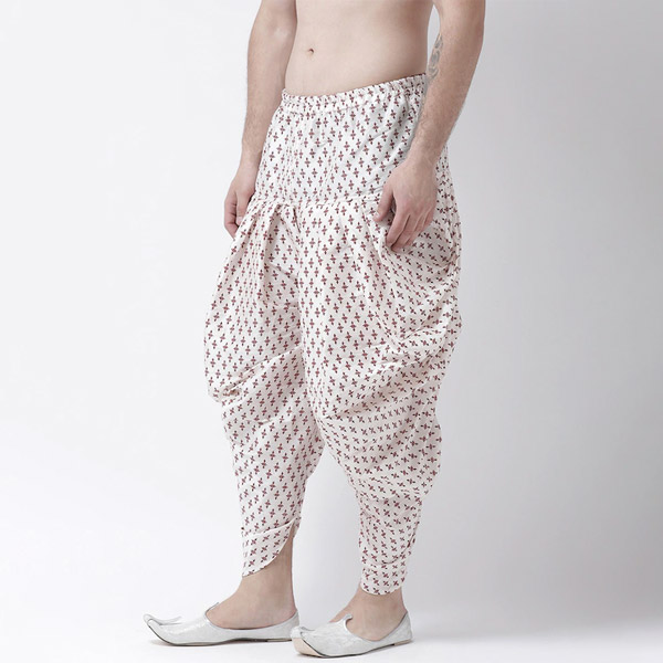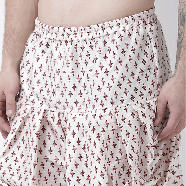 Men Off-White & Red Printed Dhoti